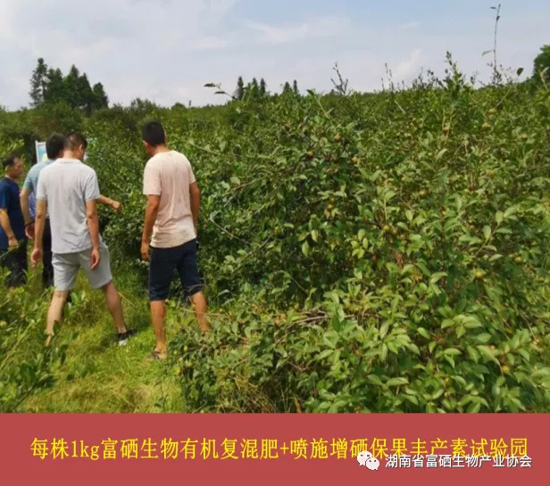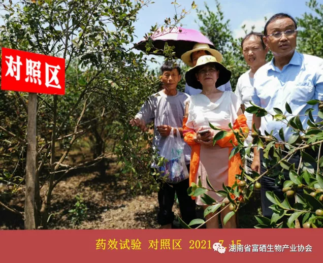 本項(xiàng)目實(shí)施油茶園,每株施用1kg富硒生物有機(jī)復(fù)混肥+噴施增硒保果豐產(chǎn)素。從現(xiàn)場觀察比較:試驗(yàn)區(qū)枝葉茂密,葉色青綠、茶果繁多;對照區(qū)長勢不旺,枝葉稀疏,葉片明顯黃綠,茶果數(shù)量偏少。從單株觀察,試驗(yàn)株果密、果多、果大、大小均勻、崎型果少。對照株茶果稀疏、果小。試驗(yàn)區(qū)與對照區(qū)差異顯著。油茶種植大戶徐清桃說:“施了增硒保果肥的,結(jié)得太好了,你看這個(gè)茶子,枝都快壓斷了,怎么得了,真是結(jié)得太好了”。