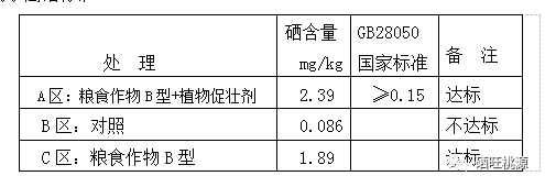 試驗(yàn)A區(qū):糧食作物B型(富硒糧油新型)1包/噴筒水+植物促壯劑1包+食鹽30g。