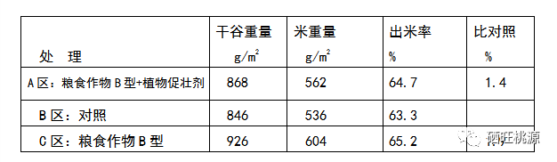 3、出米率:2023年7月25日碾米:糧食作物B型+植物促壯劑和糧食作物B型,出米率64.7%,比對照63.3%,出米率高1.4%。即每百斤谷多出1.4斤米;糧食作物B型,出米率65.2%,比對照63.3%,出米率高1.9%。即每百斤谷多出1.9斤米。