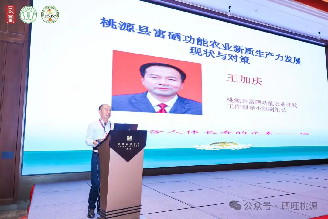 本次大會由中國農(nóng)業(yè)技術(shù)推廣協(xié)會主辦,原農(nóng)業(yè)部常務(wù)副部長、國務(wù)院參事室特約研究員尹成杰、中國農(nóng)業(yè)技術(shù)推廣協(xié)會會長陳生斗、山東省政府原副秘書長、省富硒農(nóng)產(chǎn)品協(xié)會顧問高洪波分別致辭,武漢輕工大學(xué)黨委副書記(正校級)、國硒中心主任程水源、世界施瓦茨獎獲得者、衛(wèi)健委微量元素與地方病重點(diǎn)實(shí)驗(yàn)室主任王治倫等專家學(xué)者進(jìn)行了學(xué)術(shù)報(bào)告,廣西、湖南、恩施、宜春等地區(qū)作了經(jīng)驗(yàn)交流,桃源縣富硒功能農(nóng)業(yè)領(lǐng)導(dǎo)小組副組長王加慶在會上對桃源縣富硒功能農(nóng)業(yè)新質(zhì)生產(chǎn)力發(fā)展的經(jīng)驗(yàn)和措施作了重點(diǎn)推介。